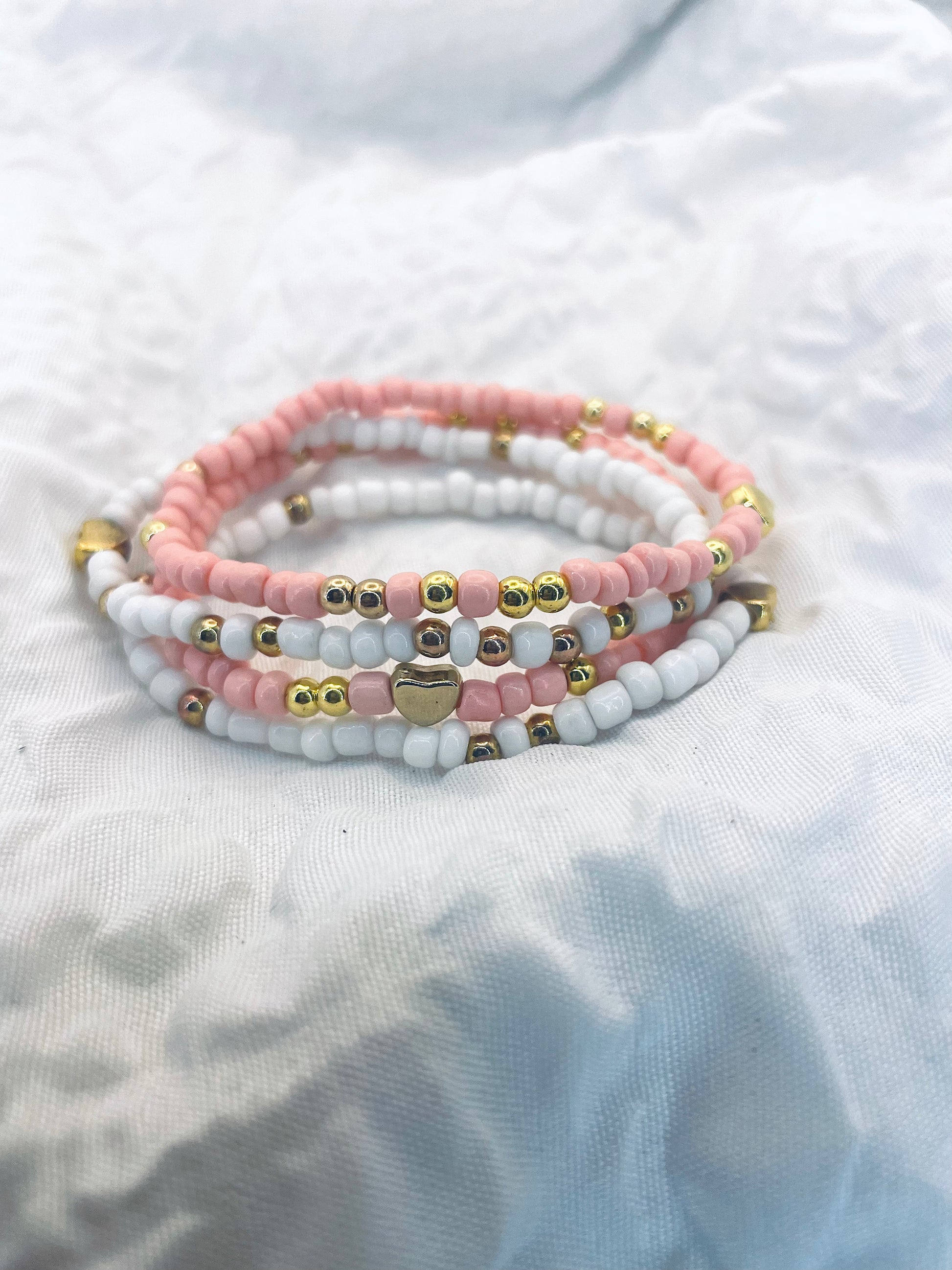 This is a 4 bracelet set. They are durable, beautiful beaded stretch bracelets. Can be worn stacked together or separately for versatility. All bracelets are one size fits all unless you specify needing a special size in the notes or a message to me.