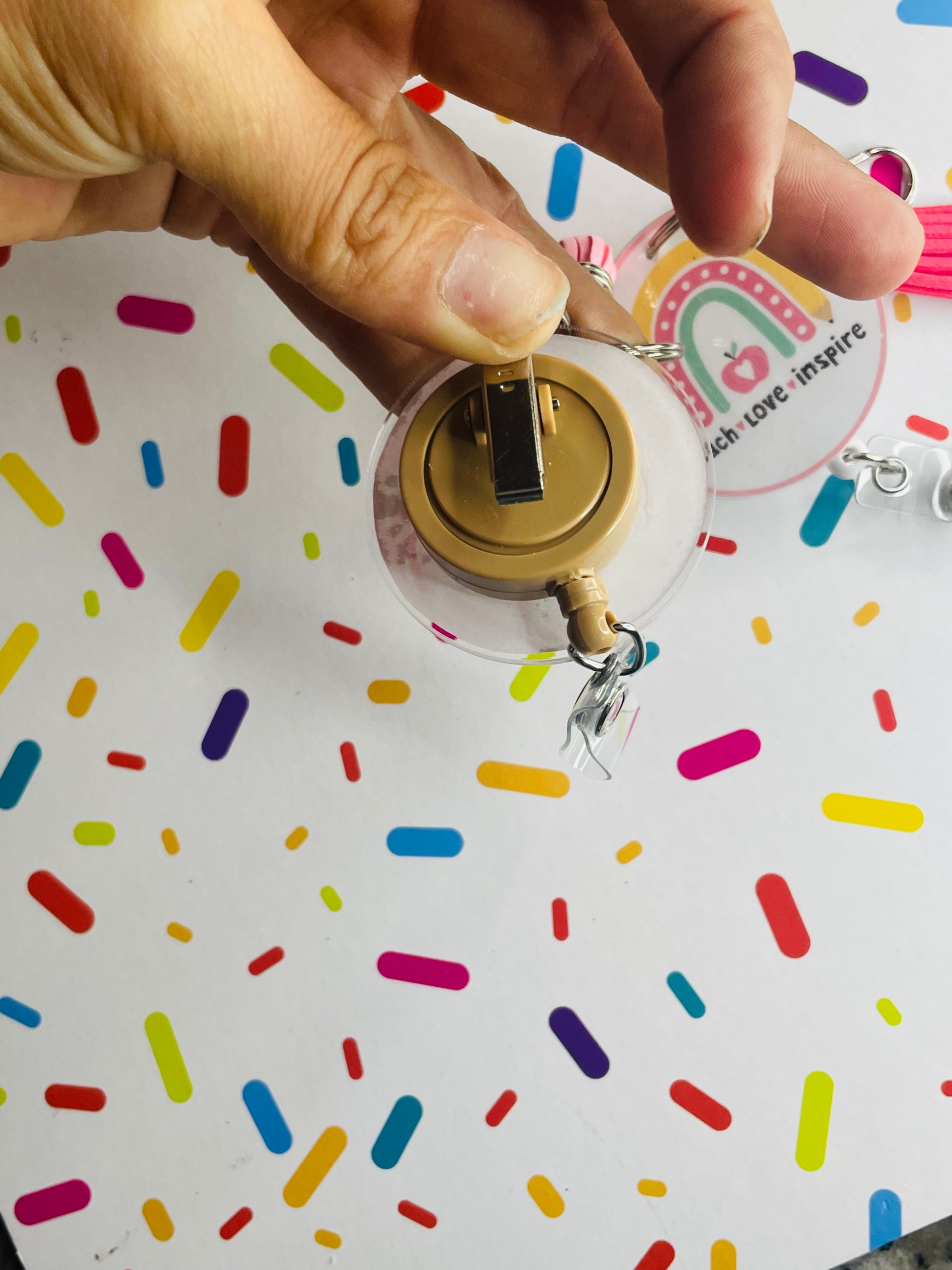 Teacher badge holder, retractable badge id holder, lanyard attachment