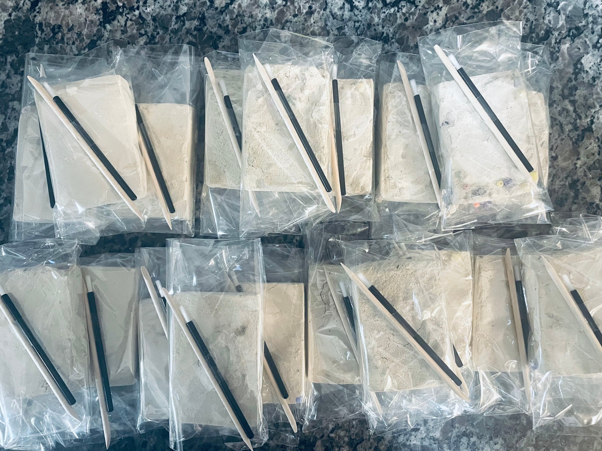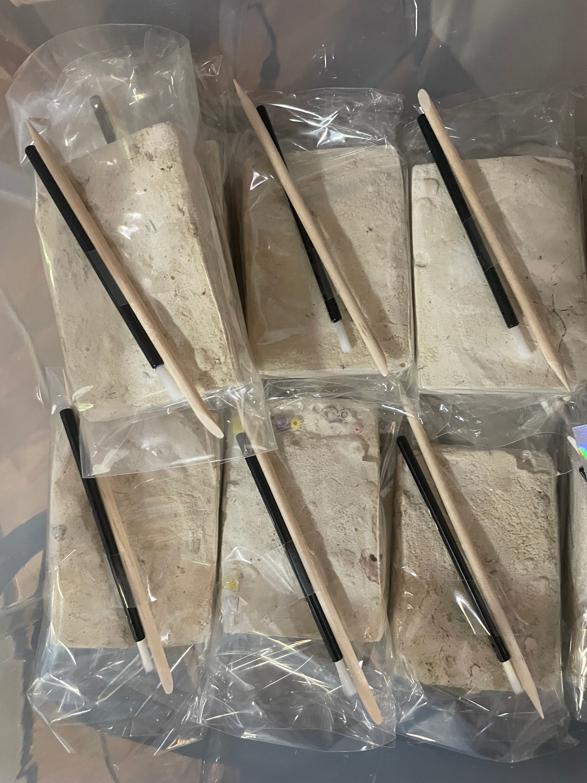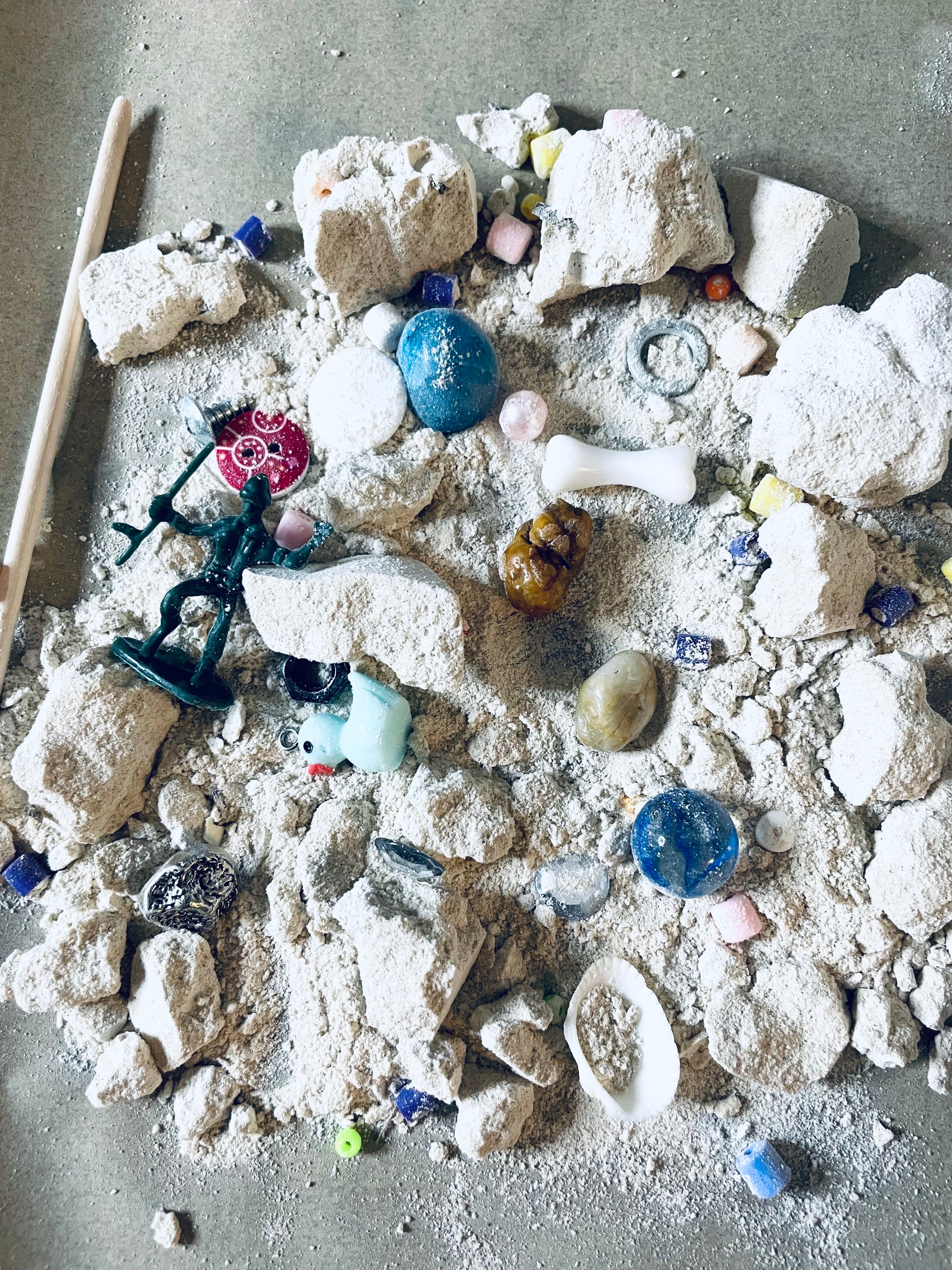 Boy’s kits will include items like fake bones,mini Dino’s, rocks/gemstones, mini screws/bolts/nuts/tools, mini legos and figurines, buttons and many more!